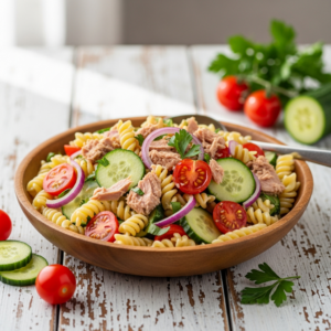 A5: Yes! It’s a balanced mix of protein from the tuna, fiber and vitamins from fresh veggies, and carbs from the pasta, all dressed lightly with heart-healthy olive oil and lemon. It’s both satisfying and nourishing without being heavy.